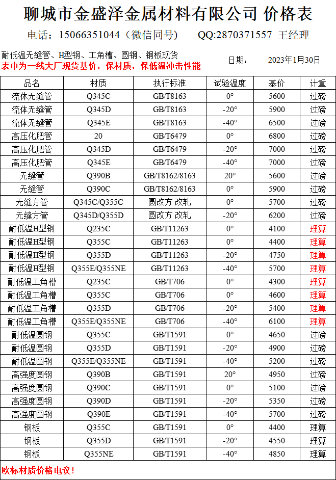 2022年11月10日耐低溫無縫管,H型鋼,工角槽,圓鋼,鋼板價格表